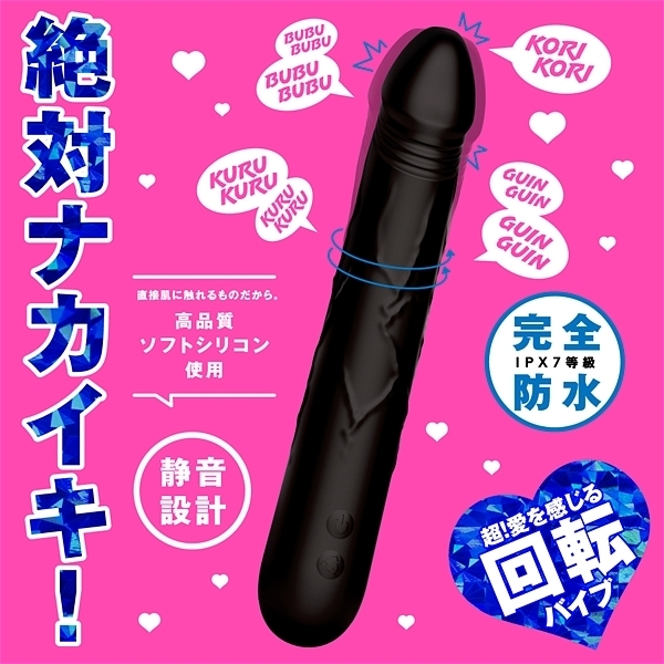 絶対ナカイキ!超愛を感じる回転バイブ!コリコリ気持ちいい回転刺激!メタルパール30個内蔵!スーパー回転10パターン!優しくコリコリからの激しくかき回すパワフルスイング!ブルブル振動9パターン!濡れすぎ注意!?奥まで響くゾクゾク快感!全90バリエーション!直接肌に触れるものなので高品質ソフトシリコンを使用しています。