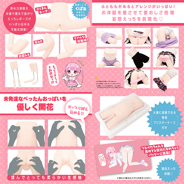 「つるぺたガール研究所」から遂に、つるぺたちゃんの身長約100cm想定の究極リアル<体型×体験>の開発に成功っ♪つるぺたと超ぷくまんの生肌密着快感!つるぺたちゃんを徹底解剖し、身長約100cm想定の超リアルイカ腹BODYで気持ち良さも継承しつつ超絶進化!未発達なぺったんおっぱいを優しく開花。