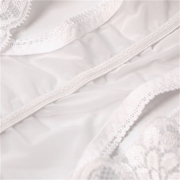 日本国内の工場で縫製され、国産のストレッチレースと伸縮性と透明性の高いストレッチ生地を組み合わせたハーフバックショーツです。中央のシャーリングゴムによってクロッチラインに沿ってくい込むようにデザインされています。●カラー:ホワイト