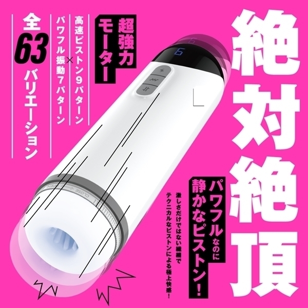 超洗練されたピストン式電動オナホでホンモノSEX体験!?高速ピストン9パターン×パワフル振動7パターンの全63バリエーション!最先端技術によるパワフルなのに静かなピストン!激しさだけではない繊細でテクニカルなピストンによる極上快感!初心者にも使いやすい電動ホールです。