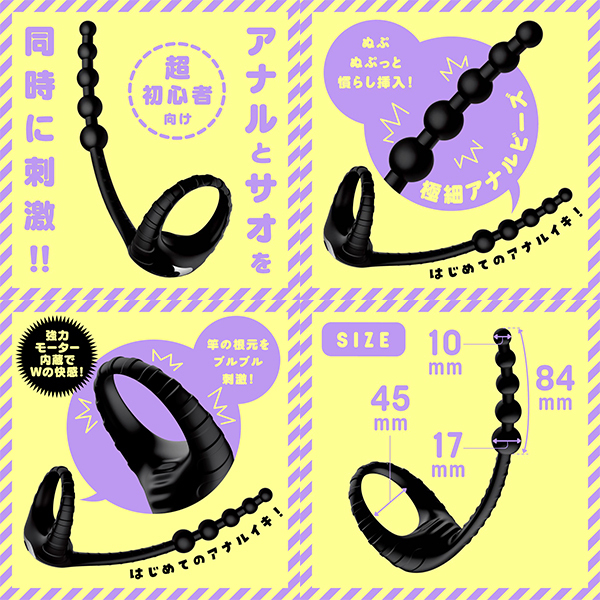 ★極細アナルビーズではじめてのアナルイキ!★PPPより超初心者にオススメなアナニーバイブが登場!高品質ソフトシリコン&ぬぷぬぷと慣らし挿入ができるアナルビーズ型で安心して挿入ができる!!さらにサオの根元をブルブル刺激するパワフルモーターを搭載!アナルとサオを同時に刺激してWの快感!!!★女の子みたいにイケるメス堕ち仕様の優秀バイブ!本体は充電式なのでエコに使用可能。