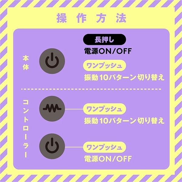 ※本体:最大連続稼働時間約50分(初期振動パターン未変更時)_防水機能IPX6等級_10パターン振動_付属品:リモコン_充電用USBケーブル