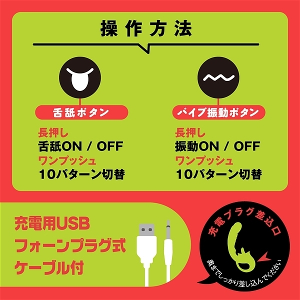 マンネリしない多彩な100バリエーション!繊細タッチな微振動からパワフル振動まで豊富な10パターンのバイブ刺激!強く押し付けても痛くなりにくい柔らかい肉厚舌のとろけるクンニ10パターン!静音設計≦60db。