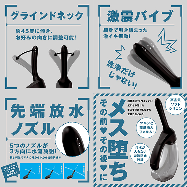 ★メス堕ちその前♪その後に♪気になる汚れをすみずみ洗浄しながら気持ち良くなる!★PPPより洗浄機能を搭載したアナニーバイブが登場!駆け巡る絶頂振動&奥までしっかり清潔、水流イキ!超快適ピットウォッシュ!『先端放水ノズル』は5つのノズルが3方向に水流放射!汚水が入らない逆流防止設計です。