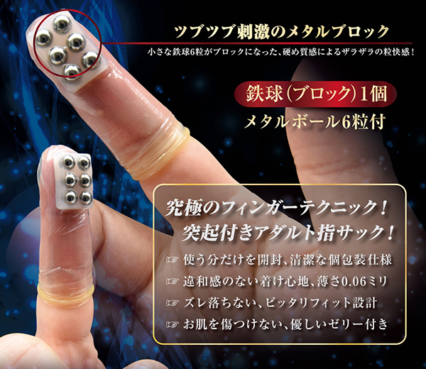 先端には小さな鉄球が6個ついていて、ただ撫でるだけでコリコリとした刺激が与えられます♪メタルボールは台座から簡単には外れないように出来ていて、硬質な感触が普段の指挿入とは違った快感を味わわせてくれます。