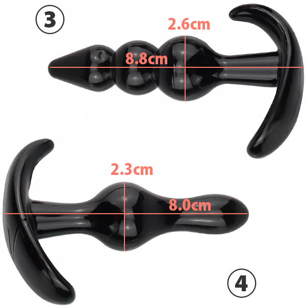 アナル用に開発された拡張プラグが4種類♪それぞれが段階別に用意されているので、ステップアップしながらアナル開発が楽しめます!独自性の高いコブ形状やフォルム、太さと拡張用に最適な4種類。
